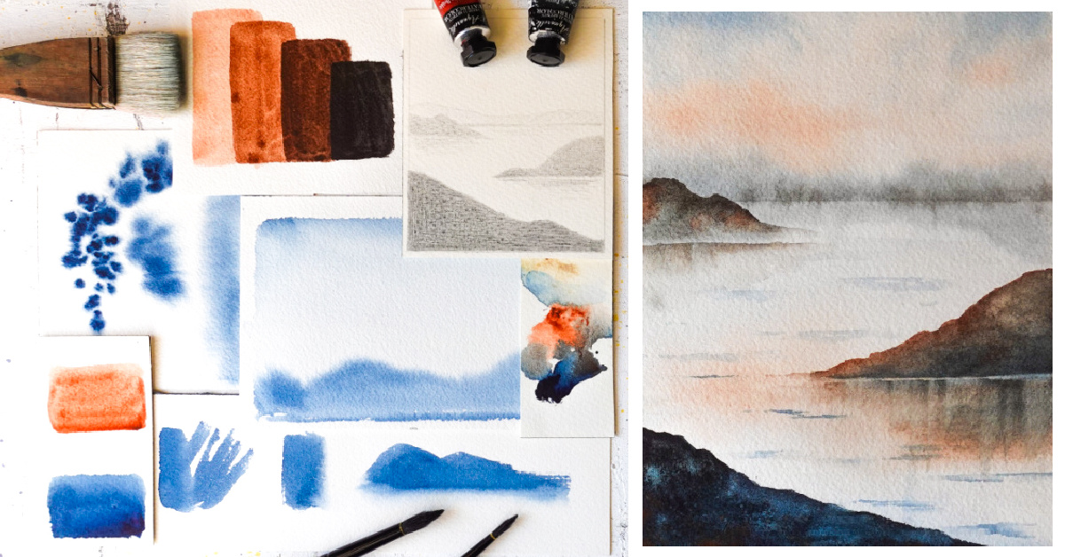 A beginner-friendly class that will teach you how to add depth and atmosphere to simple mountain landscapes. You'll practice techniques and learn to simplify reference photos through short digestible lessons, followed by the step-by-step painting process of a mountain landscape.